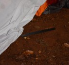Ao lado do corpo, a polícia civil apreendeu o facão usado pelo agressor para matar o homem. A polícia acredita que mais de uma pessoa participou do assassinato.