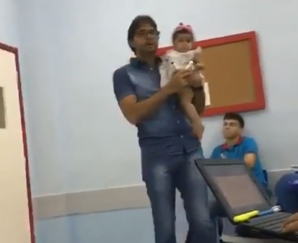 De acordo com estudantes do terceiro período do curso de direito que acompanhavam a aula, a mãe da garota estava cansada devido ao tempo em que passou com a menina nos braços, assim como a pequena já dava sinais de choro. Ao perceber que Bárbara queria sair da sala para não atrapalhar a explicação, o professor se ofereceu para ajudar a aluna, segurando o bebê nos braços, ao mesmo tempo em que deu prosseguimento à explicação dos conteúdos. A criança, por sua vez, ficou quietinha.