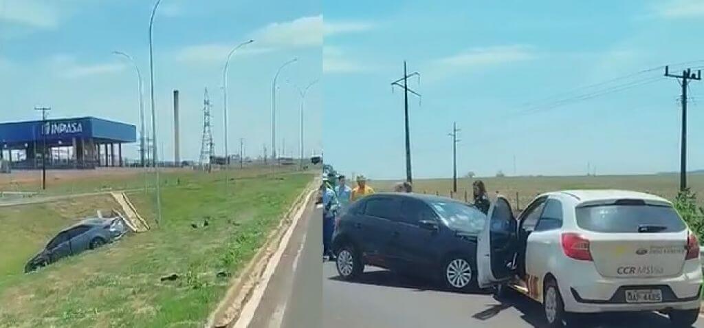 Conforme apurado, o motorista de um Volkswagen Gol perdeu o controle da direção ao entrar na rotatória recém-implantada na rodovia. O carro atingiu um veículo pertencente à concessionária responsável pela administração da BR-163 em Mato Grosso do Sul e, na sequência, colidiu com um terceiro automóvel, possivelmente um Virtus.