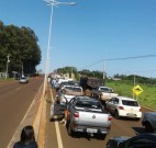 Conforme informações repassadas à reportagem da 94FM, o congestionamento está grande, em torno de 10 km, inclusive, algumas pessoas já esperam uma hora no local.
