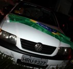 Bandeira do Brasil presa a capô se solta, tampa visão de motorista e provoca acidente na 163
