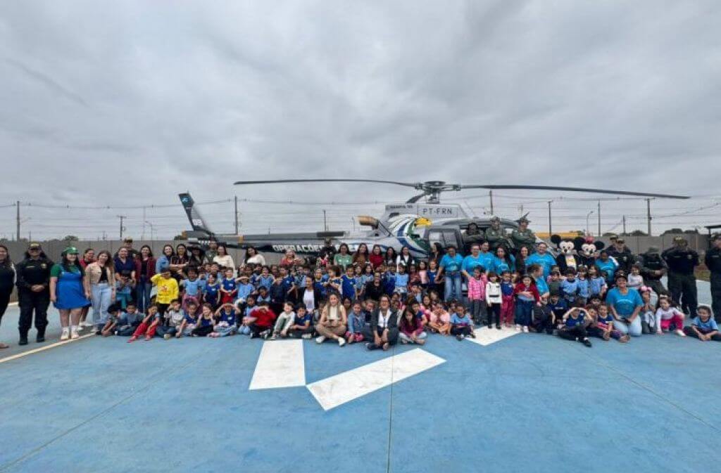 A atividade, promovida na semana que antecede o Dia das Crianças, proporcionou momentos de aprendizado, curiosidade e diversão. Durante a visita, os alunos puderam conhecer de perto o trabalho desenvolvido pelos policiais e interagir com integrantes da Coordenadoria-Geral de Policiamento Aéreo (CGPA).