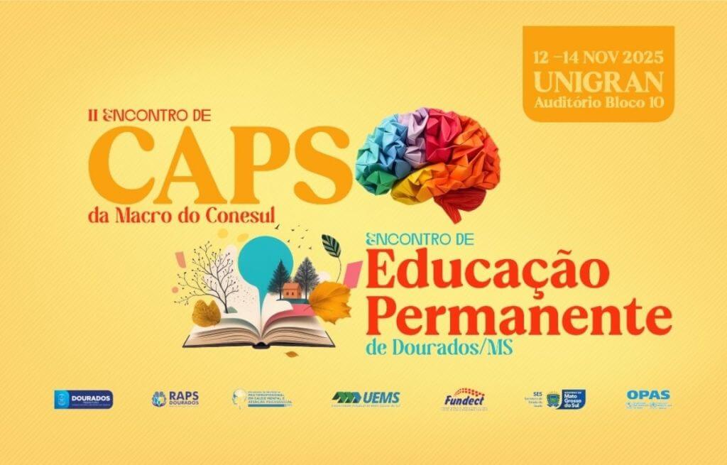 A Prefeitura de Dourados, por meio da Secretaria Municipal de Saúde (Sems), realiza o I Encontro de Educação Permanente e II Encontro de Centro de Atenção Psicossocial (CAPS) da Região do Conesul, de 12 a 14 de novembro, no bloco 10 do Centro Universitário da Grande Dourados (Unigran).