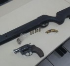 Diante da postura do suspeito, os militares foram até a casa dele, onde encontraram o revólver calibre 38 sobre a geladeira e a espingarda de pressão sobre a cama.