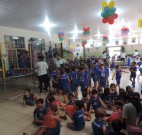 Depois de toda essa diversão as crianças são sentadas, mais uma vez por turmas, nas mesas onde serão servidos o bolo e o refrigerante. Antes, porém, o algodão doce é saboreado por cada pequenino com imensa vontade.