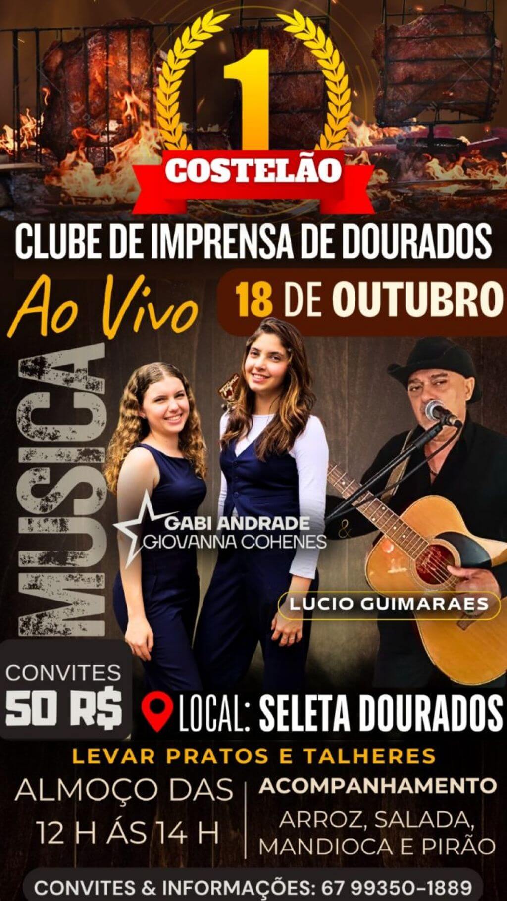 Uma festa para degustar os sabores da carne, prosear muito com os amigos e ouvir o melhor da música regional sul-mato-grossense. É o 1º Costelão do CID – Clube de Imprensa de Dourados – que acontece neste sábado (18), a partir das 11h, no salão principal da Seleta, localizada na Avenida José Roberto Teixeira, nº 691, Jardim Flórida.