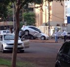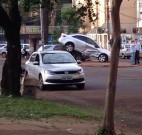 Você na Redação: Após batida, carro vai parar sobre lixeira em Dourados
