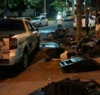Policiais militares foram acionados para se deslocarem até a frente de um restaurante localizado na Rua Aldair Rosa de Oliveira, em Três Lagoas, onde um motorista acabou batendo em cinco motocicletas.