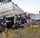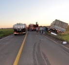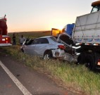 Com a manobra, o condutor de um Toyota Corolla, com placas de Presidente Prudente (SP), que trafegava em direção a Nova Andradina, para evitar a colisão frontal com a caminhonete que fazia a ultrapassagem, realizou uma frenagem brusca, sendo tocado por caminhonete, uma GM D-20, com placas de Nova Andradina, que seguia logo atrás. Após ser atingido pela D-20, o Corolla ficou fora de controle e se chocou contra a carreta.