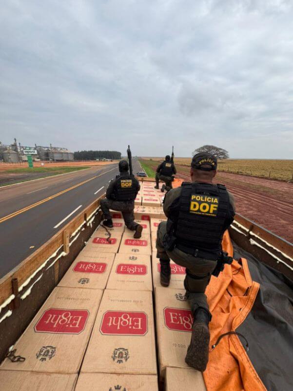 Na quinta-feira (2), policiais do DOF (Departamento de Operações de Fronteira) apreenderam um caminhão Mercedes Benz, tipo Truck Graneleiro, carregado de cigarros contrabandeados do Paraguai, na BR-487, em Itaquiraí.