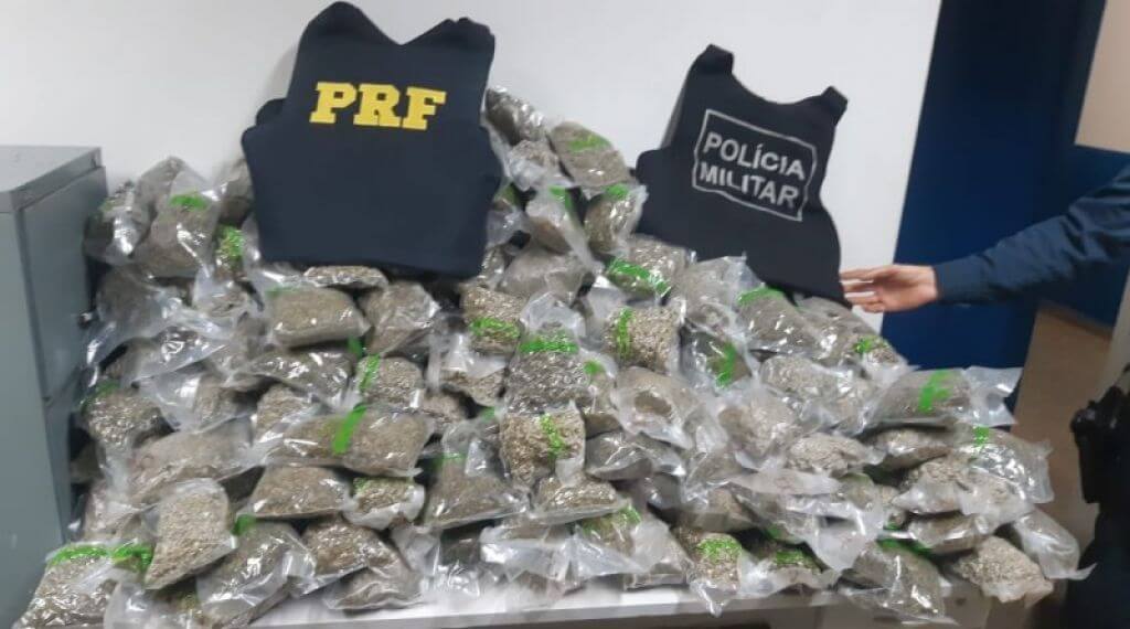 A Polícia Rodoviária Federal (PRF) e a Polícia Militar (PM) apreenderam nessa segunda-feira (25), em Itaquiraí, 58 kg de skunk, a 'supermaconha'.